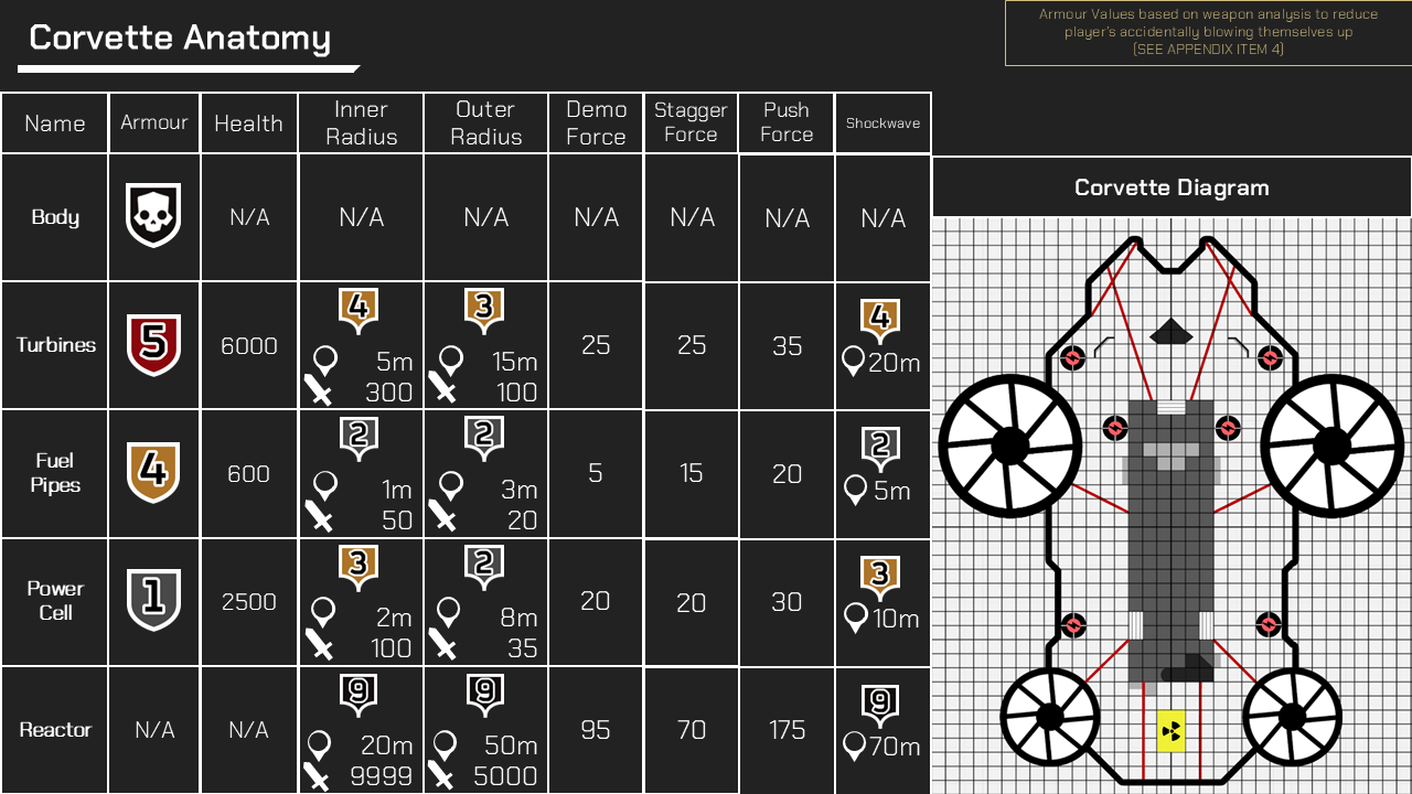 Originally, the idea was to give the corvette health so that if a certain part took too much damage then it would explode into flame, with enough parts being destroyed before data retrieval resulting in a mission fail as the corvette explodes. However, I wasn’t satisfied with this as I felt it was very prone to griefing where another player could purposefully ruin the fun for others.