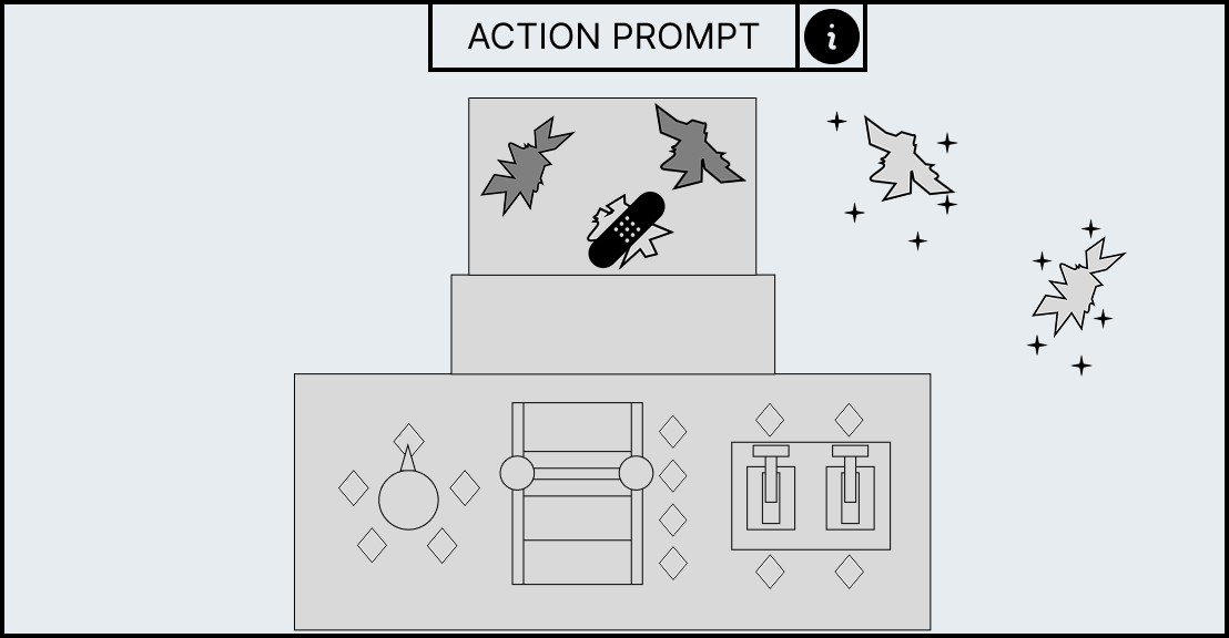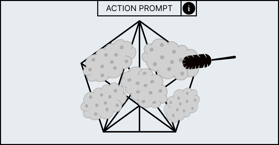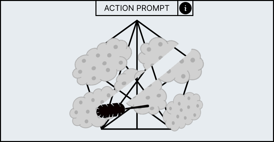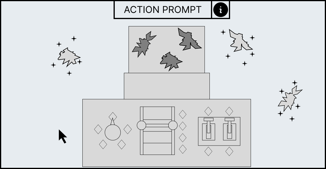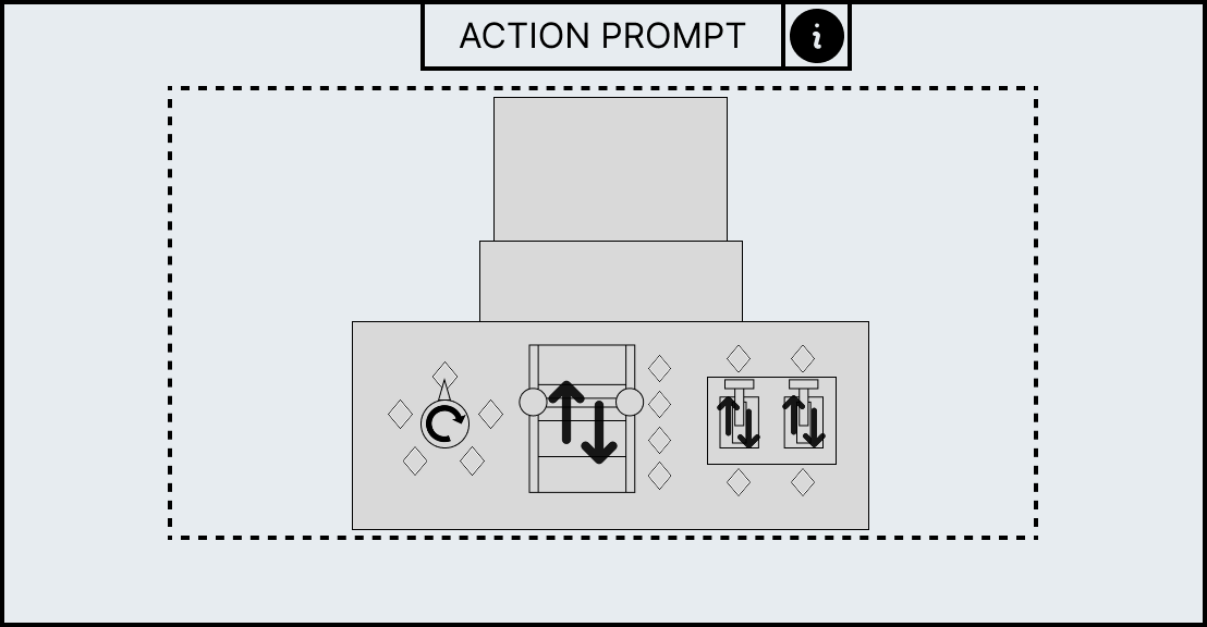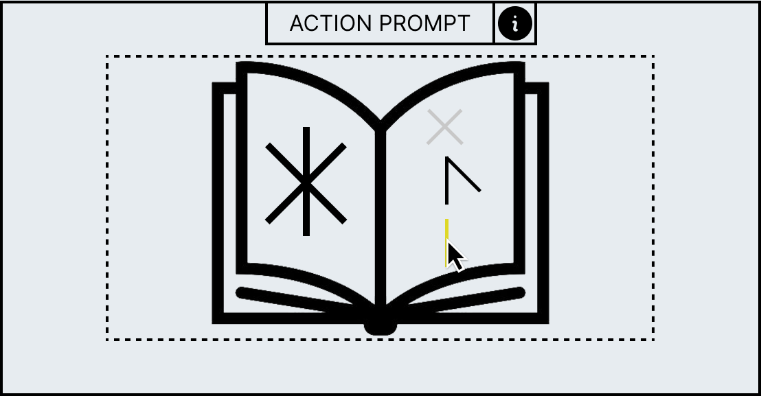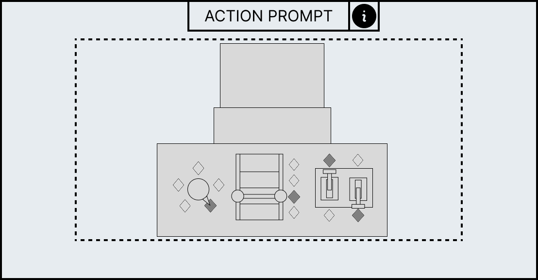 Each minigame has unique UI elements depending on the workstation as each workstation requires different actions to complete its minigame. However, all minigames share a HUD which contains information to help guide the player. At the top of the HUD an action prompt will be displayed which will summarise what the player has to do in the current stage, for example, the mortar and pestle minigame has the action prompt called “break it down” to convey to the player that they have to smash the ingredient. However, if this is not sufficient enough an information panel can be brought up with the “info” icon that allows the player so see the entire minigame broken down into stages with the action prompt as a title as well as a short description and video which will explain what the player has to do.