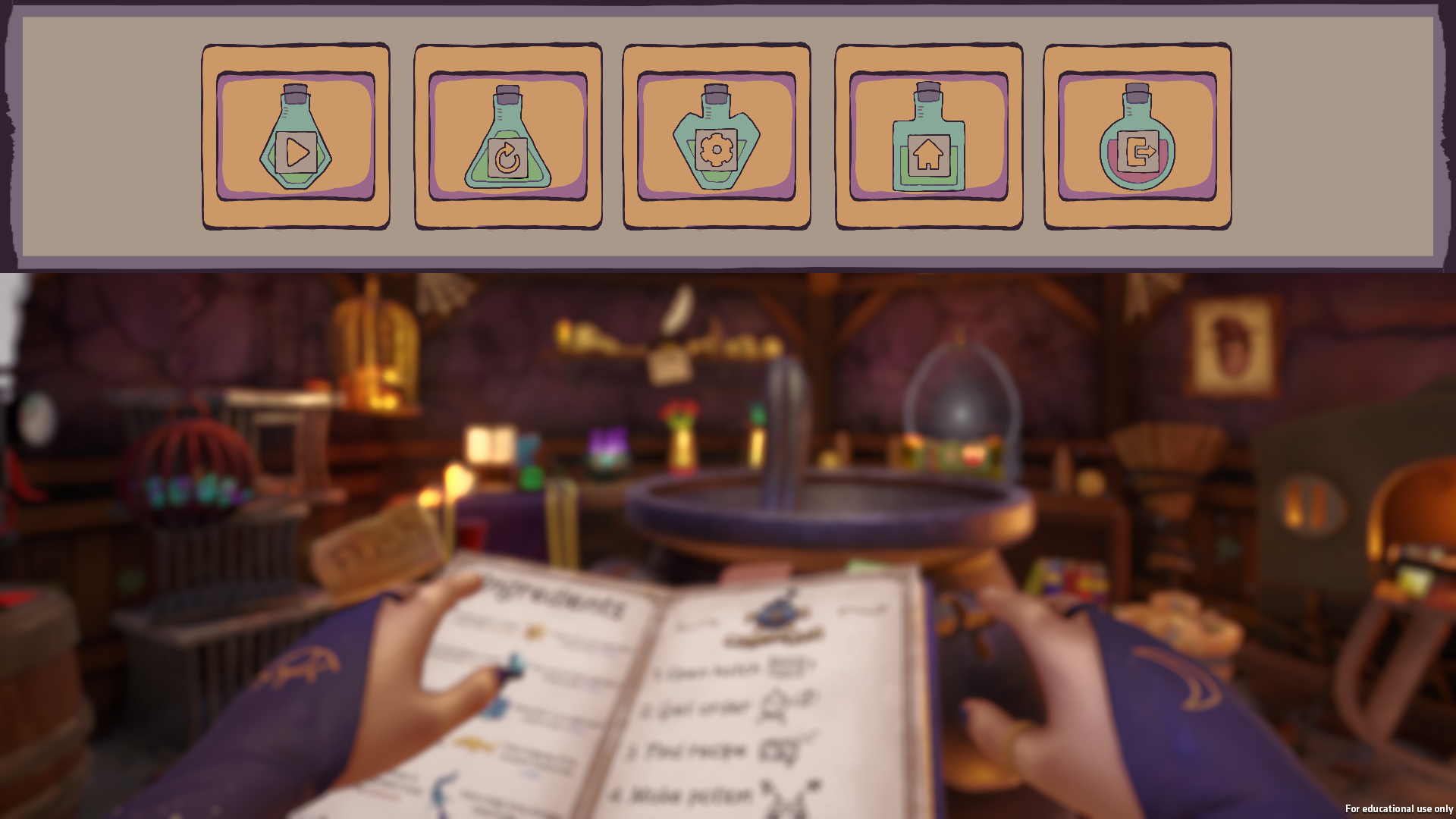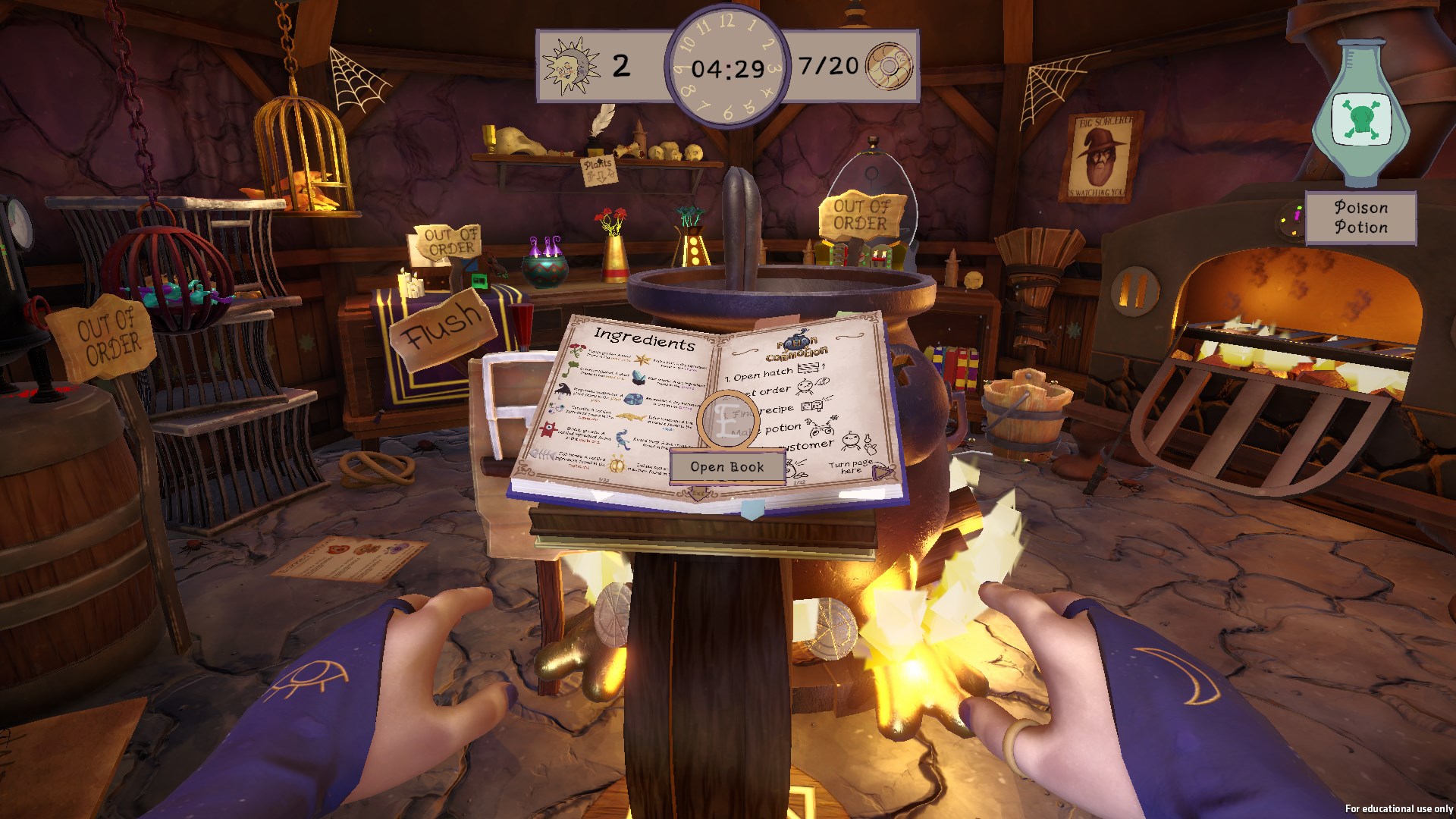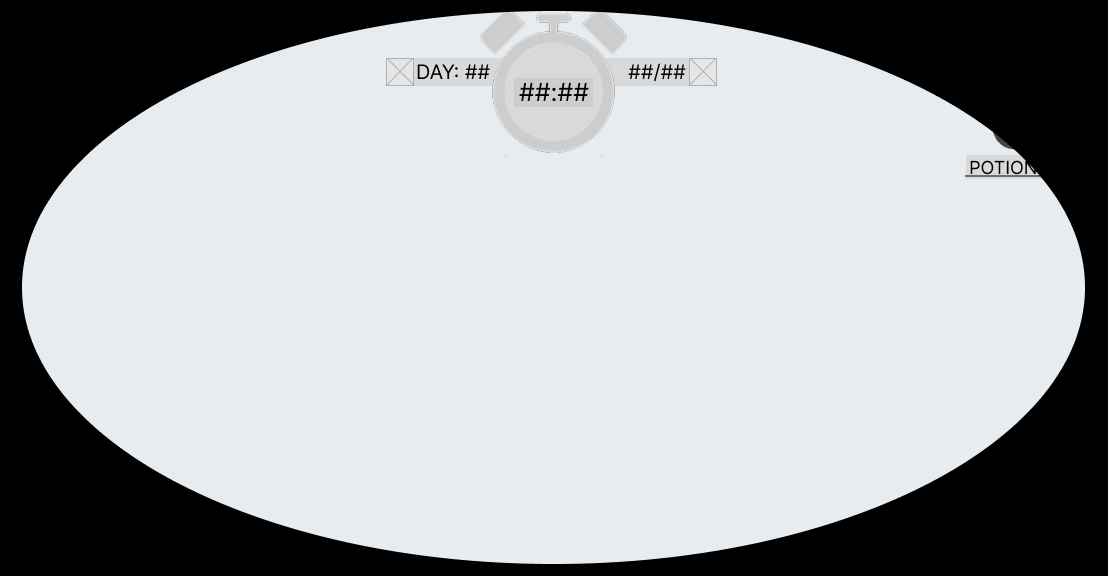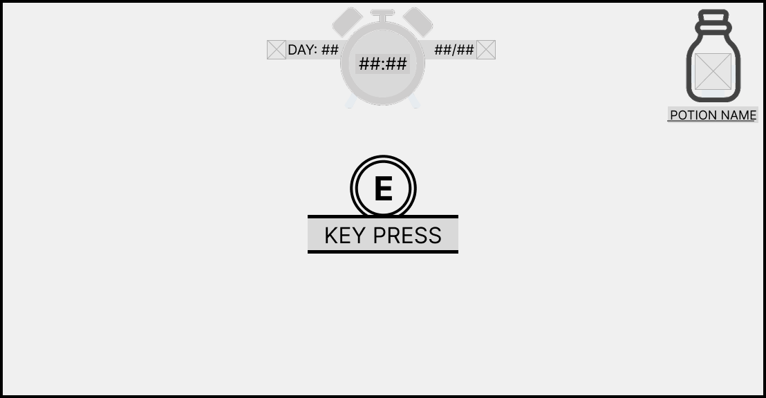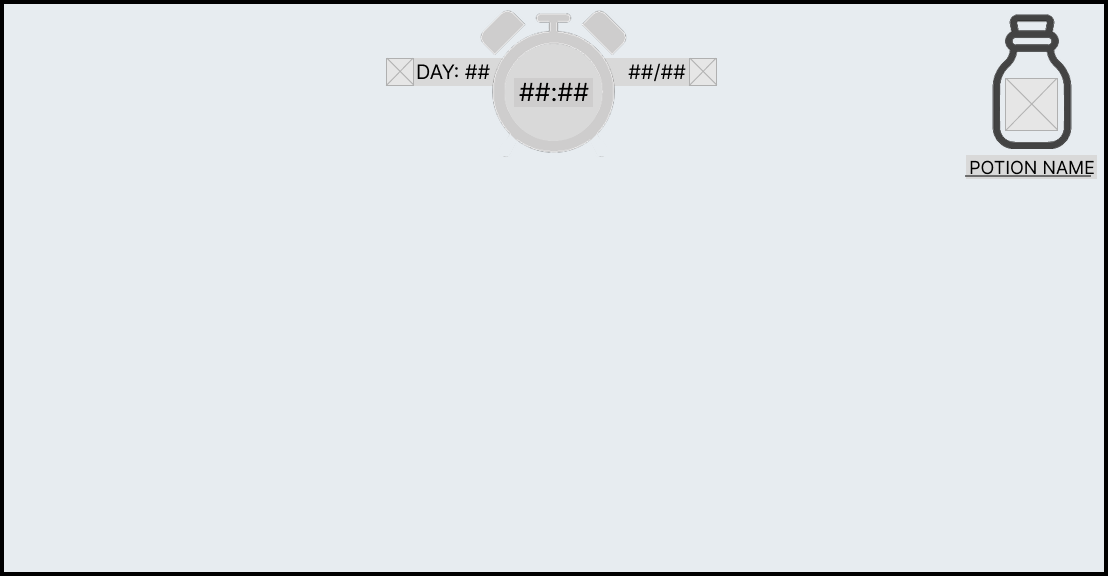 In the top right corner is the “current potion” widget which when the customer gains an order will contain the specific potion’s icon and the potion’s name so that the player can find the recipe in the recipe book.
