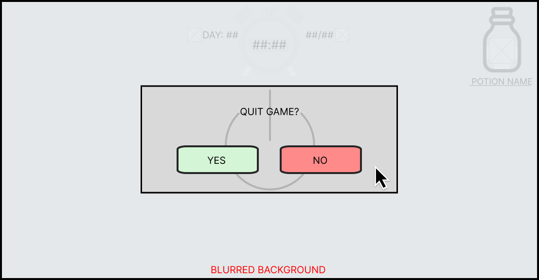 When the player presses either the home or exit game button then a confirmation box will appear in the centre of the screen asking if they would like to continue with this action. This was in case the player accidentally pressed either of those options, as it would be frustrating to the player if they lost progress in a day due to a miss click.