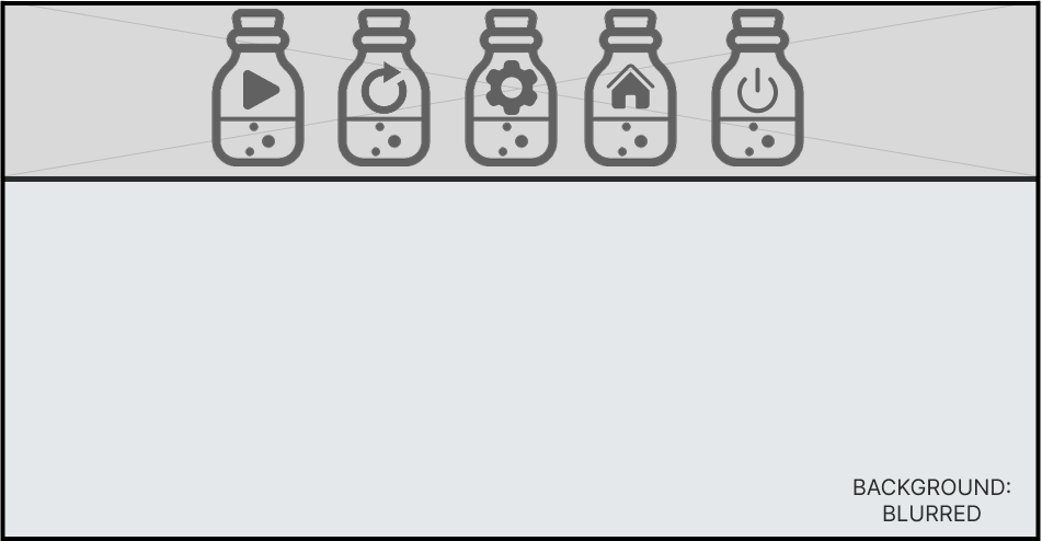 When the player pauses the game, the screen will blur and a header will appear at the top. This will contain multiple buttons such as resume, retry, options, home and exit game with all buttons using icons instead of text.